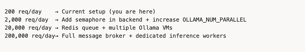 Die integrierte Queue von Ollama wird unterschätzt – für etwa 200 Requests pro Tag braucht man kein Redis.
